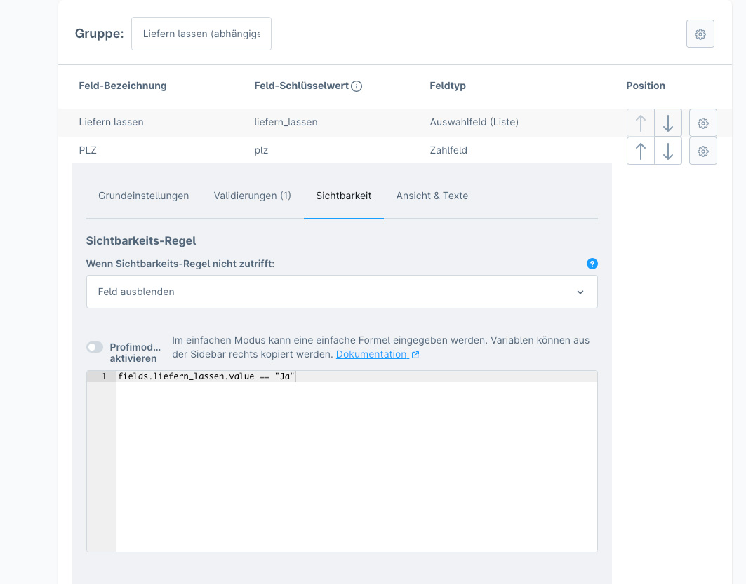 Oftmals ist es so, dass ein oder mehrere Optionen von einer anderen Auswahl abhängen. Dies ist ebenfalls problemlos realisiertbar.
