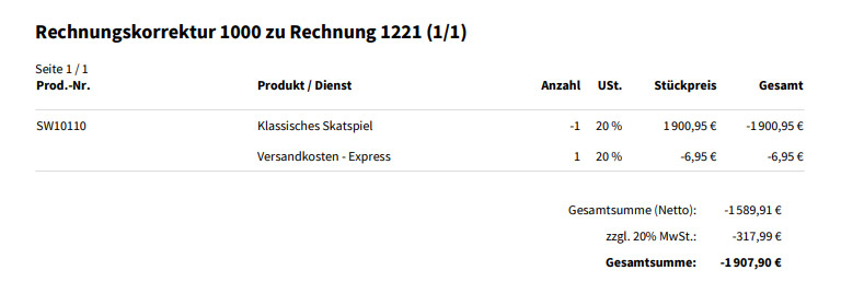 Erstellen Sie unkompliziert eine Rechnungskorrektur, wenn der Kunde eine Rücksendung gemacht hat.