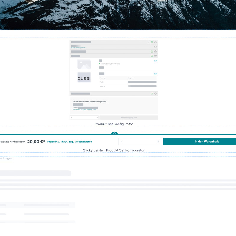 Die Produktdetailseite des Set-Konfigurators kann über die Erlebniswelten individuell gestaltet werden.
