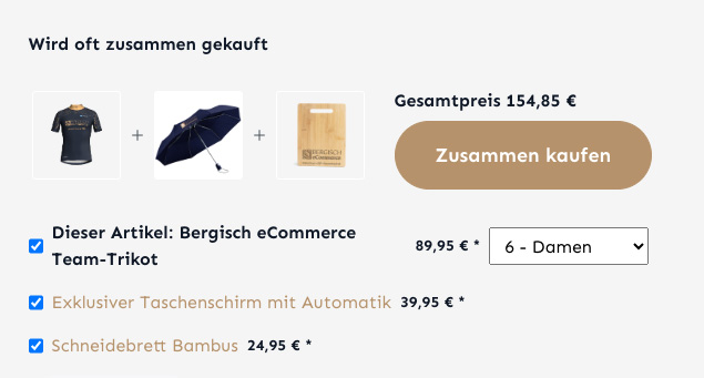 Die Erweiterung ermittelt automatisch passende Cross-Selling-Artikel auf Basis der letzten Käufe. So lässt sich der Warenkorbwert steigern ohne für jeden Artikel Cross-Selling-Produkte zu pflegen.