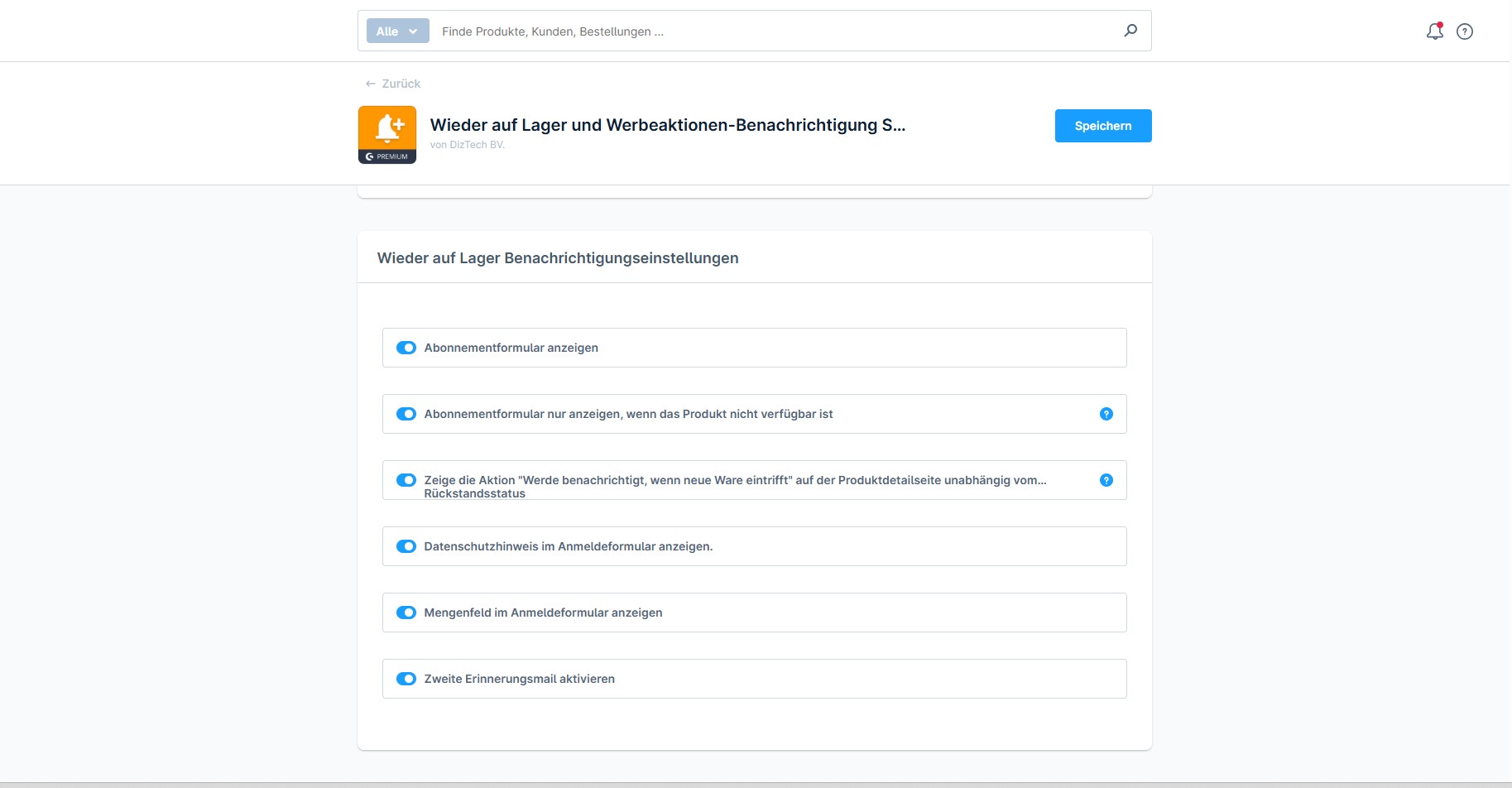 Aktiviere das Plugin und entscheide selbst, wie deine Kunden benachrichtigt werden sollen — per Mail, SMS oder WhatsApp. Zusätzlich kannst du personalisierte Angebote einfügen und dich automatisch per E-Mail informieren lassen, sobald der Lagerbestand unter deinen gewünschten Mindestwert fällt.